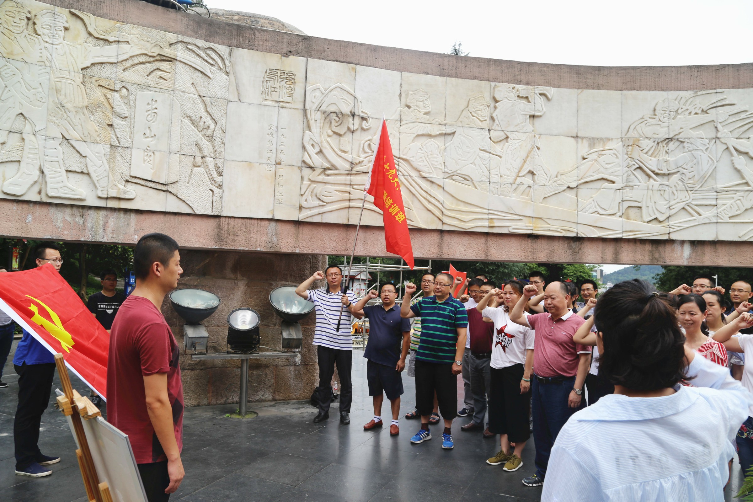 “我志愿加入中国共产党,拥护党的纲领,遵守党的章程……”2018年6月27日,在贵州遵义凤凰山红军烈士陵园,来自十大网投平台排名的42名党员,面向党旗重温入党誓词。在庄严的宣誓声中,拉开了学院2018年第一期“学十九大,走长征路”专题培训班的序幕。