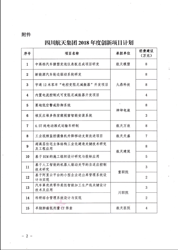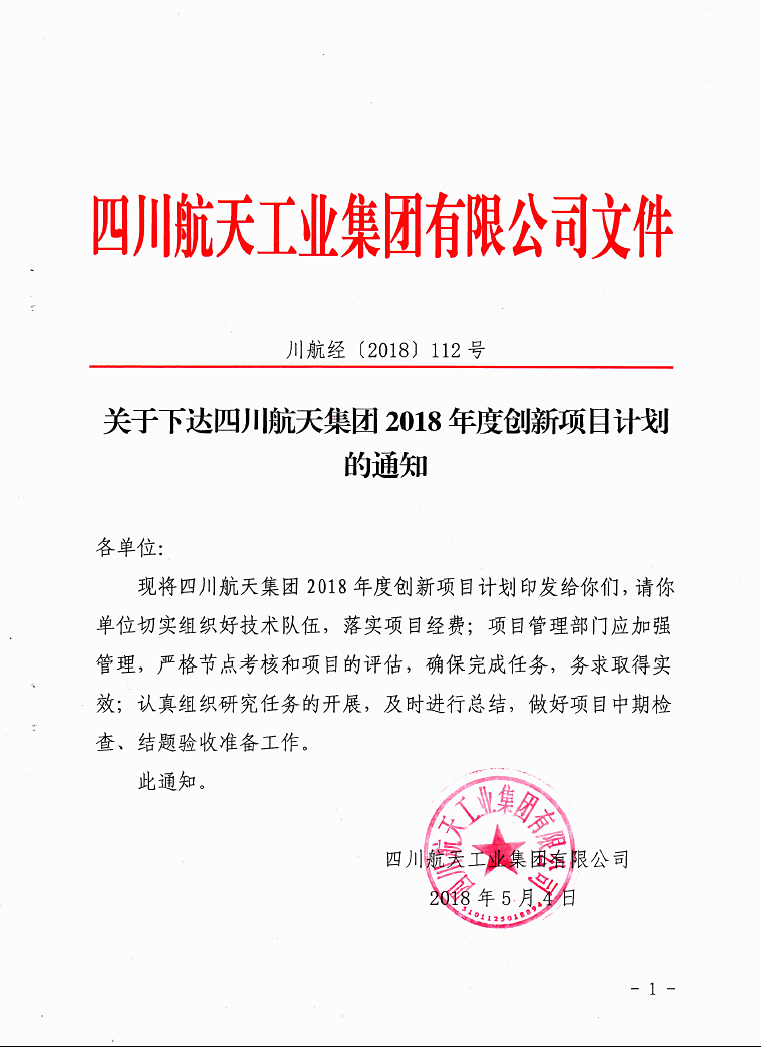 2018年5月15日,由四川航天工业集团公司下发的文件《关于下达四川航天集团2018年度创新项目计划的通知》中,由飞行器制造系胡文彬教授牵头申报的《汽车罩壳类零件柔性智能加工生产线关键设计技术及应用》项目经集团公司审批通过,获得科研经费支持。