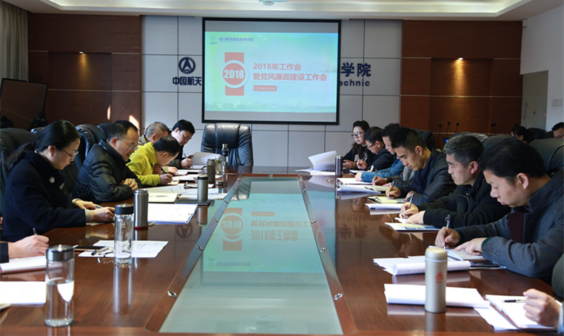 最后,学院院长刘家騑强调指出,2018年是学院贯彻落实新发展理念跨入新时代的发力之年,是实施“十三五”规划重要一年,是四川省优质高等职业院校建设项目启动之年。他要求,各部门要坚持以创建优质高职校为主线,以提升内涵质量和航天职教品牌价值为中心,明确任务、科学合理地安排好全年各项工作。两级领导干部要从加强学习,有政治担当;落实任务,从严治党;遵章守纪,严格要求;廉洁自律,争当好干部四个方面持续锤炼过硬本领,永葆干事创业激情,振奋精神地投入到2018年全年工作中去。