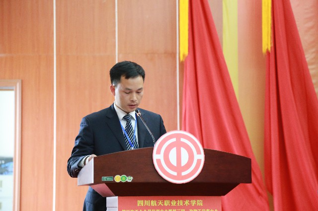 四川航天工业集团罗青春副书记对大会的召开表示祝贺并讲话。罗书记在讲话中对学院工会工作提出四点希望:一是坚持党的领导,始终带领全体教职工坚定不移跟党走;二是坚持走群众路线,着力维护教职工合法权益;三是坚定务实创新,不断彰显全院教职工的勃勃生机;四是坚定助力发展,不断满足全院教职工对美好生活的需求。最后罗书记预祝大会圆满成功,祝大家节日快乐!