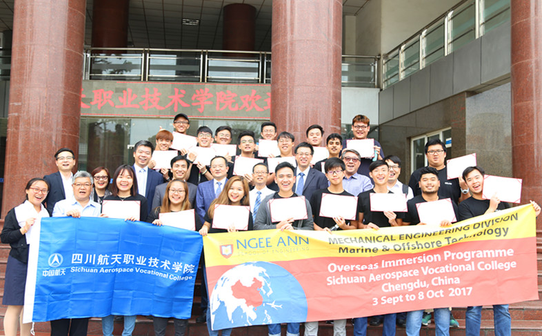 会上,刘家騑院长首先代表十大网投平台排名欢迎马伟明副校长一行的到来,祝贺义安理工学院学生顺利完成项目学习,圆满结业;之后,回顾了两校11年的合作历程与友谊,及我校经9年努力有效提高了留学生项目质量;期待未来两校建立深入合作,合作开发一系列品牌项目;最后希望两校师生能成为中新及两校深化见证者、参与者、推进者,共同推进两国、两校进一步交流和发展。马伟明校长代表义安理工学院感谢航天职院的热情接待,并谈到在与同学生们的交谈中,深刻地感受到了同学们一点一滴的成长,学生们深入体会了中国经济、文化及历史文化的魅力,收获了珍贵的友谊,这是在新加坡的环境中无法实现的,这也是双方开展“中华文化之旅”项目的价值和意义所在。此外,担任留学生带队老师的周一立主任也做了现场发言,他感谢学校各部门及学生团队的悉心照顾,特别感谢留学生辅导员朱利华老师不辞辛劳的付出。会议最后,航天职院院长刘家騑为此次来华的19名新加坡留学生颁发了结业证书,并合影留念。