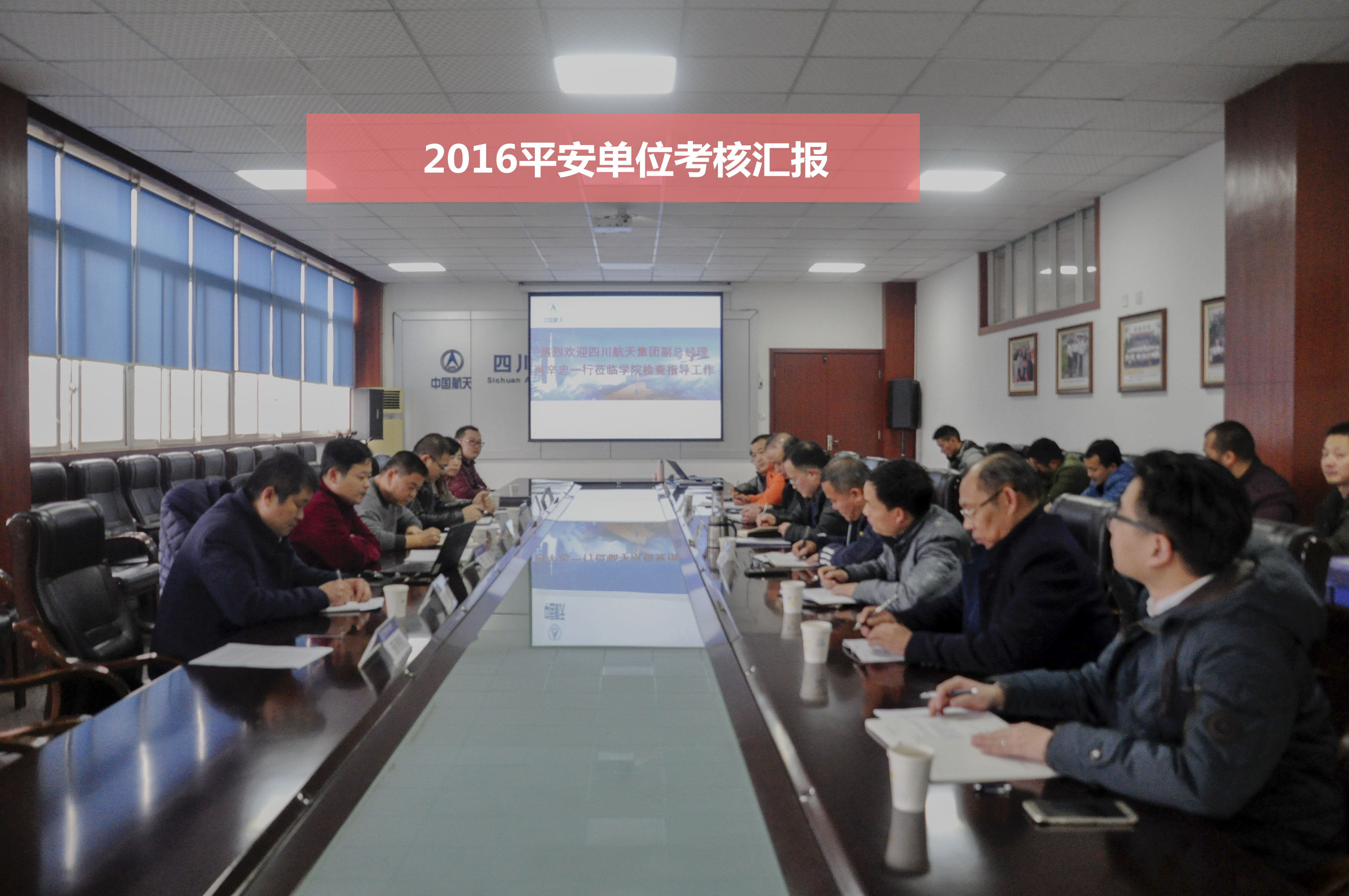 12月16日,由四川航天工业集团有限公司肖辛忠副总经理带队的平安单位考核小组,对我院2016年平安单位建设工作进行了专项检查,通过资料审阅、现场检查和领导谈话,考核组各位专家对我院年度平安单位建设工作取得的成绩给予了充分肯定。