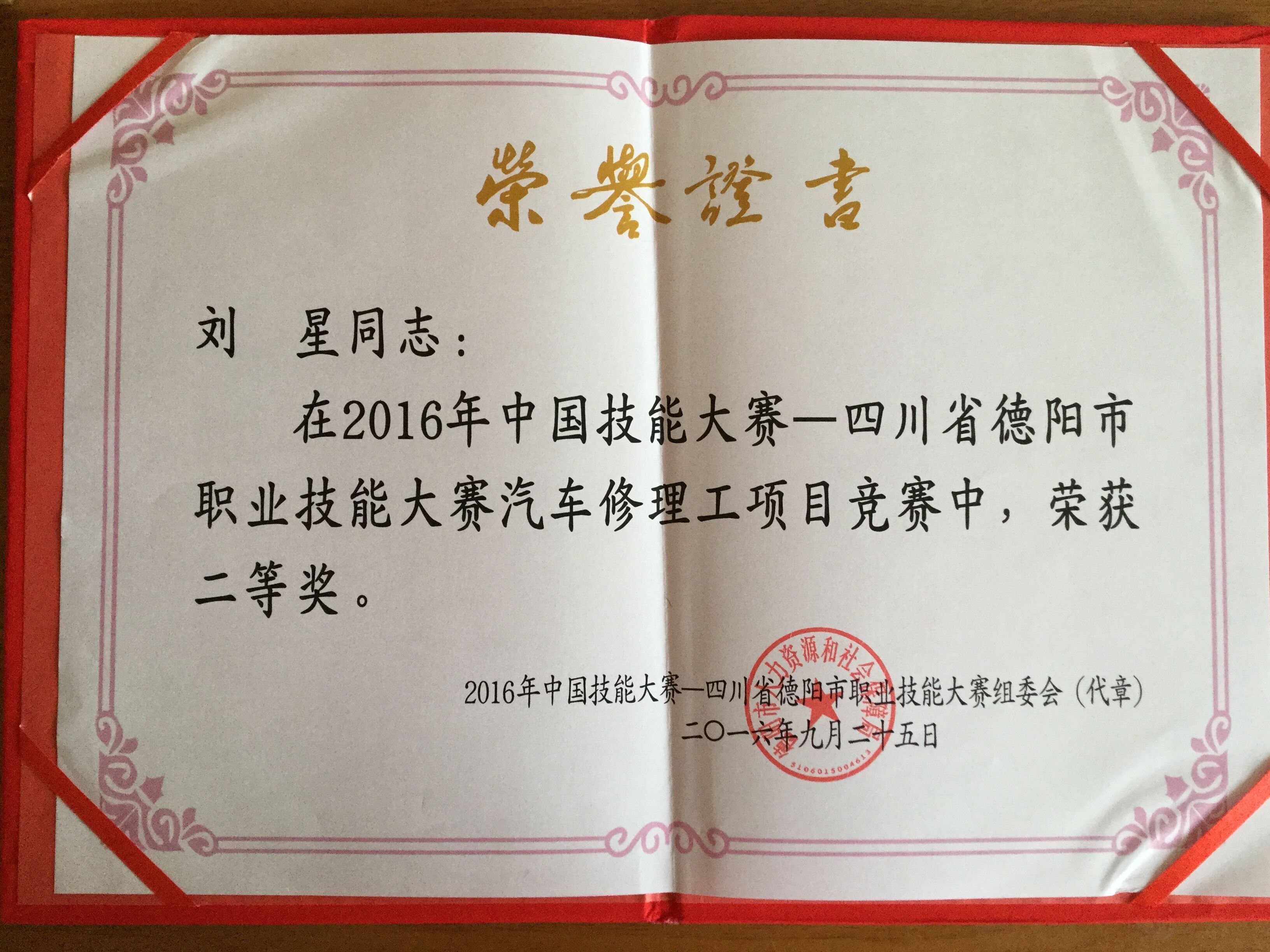 近期,我院汽车工程系教师刘星在“2016年中国技能大赛—四川省德阳市职业技能大赛”汽车修理项目中,荣获二等奖;在“2016年成都经济区第二届职业技能大赛”汽车修理项目中,荣获铜奖。