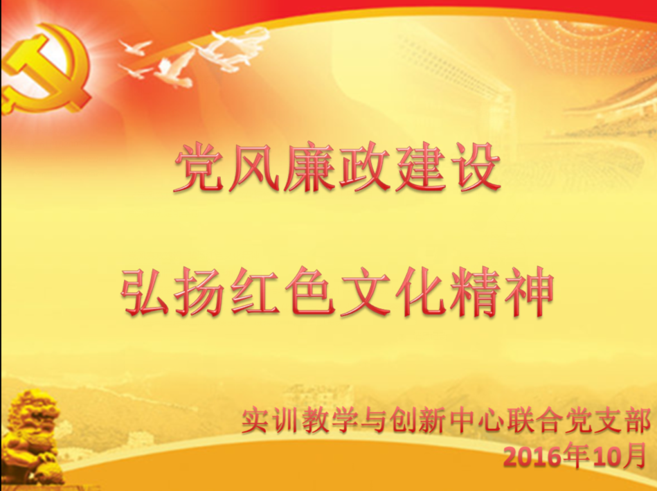 10月21日下午4点,学院实训创新联合党支部根据学院党委工作安排及该支部2016年度计划,在龙泉实训教学部会议室开展了以《党风廉政建设,弘扬红色文化精神》为主题的支部活动。