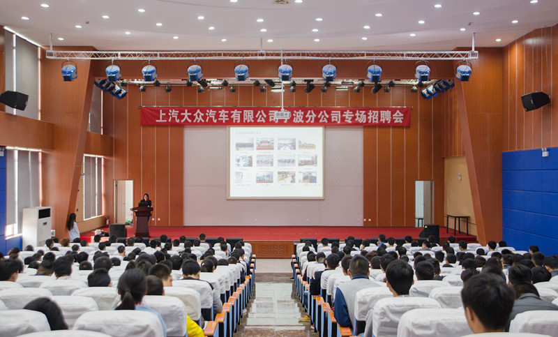 上汽大众汽车有限公司宁波分公司人力资源部率队公司冲压、焊装、涂装、总装四大车间的16名招聘官来到我院举行2017校园专场招聘会。10月9日上午9点,招聘会在龙泉校区和广汉校区同时进行,在招聘宣讲、笔试、技能操作和面试结束后,该公司对我院毕业生的动手操作能力和综合素质赞不绝口,由原定计划招聘160人增加到300人。
