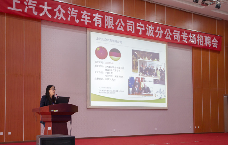 上汽大众宁波分公司是继神龙汽车、一汽-大众、长安福特杭州分公司后又一中国汽车整车制造企业来校开展2017校园招聘会。国庆节前,学院副院长陈宇、副院长李晓敏曾带队前往上汽大众汽车有限公司宁波分公司洽谈校企合作,开拓毕业生就业市场。学院始终坚持“积极走出去,大力引进来”,扎实做好毕业生就业工作。