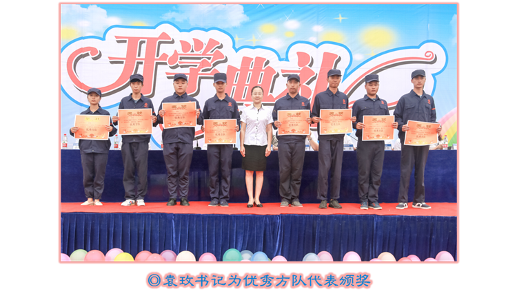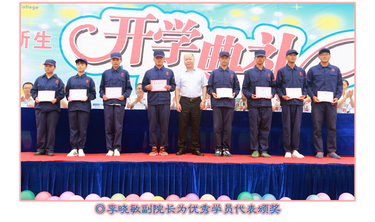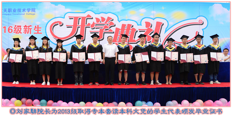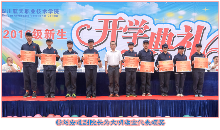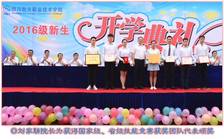 表彰2016级军训优秀学员、文明寝室、优秀方队,为2013级取得专本套读本科文凭的学生代表颁发毕业证书,为获得国家级、省级技能竞赛获奖团队代表颁奖。
