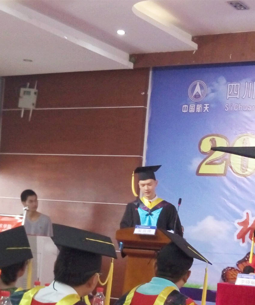 再见了,兄弟姐妹们,再见了尊敬的领导、老师,再见了我亲爱的母校,让我们共同祝愿学院领导、老师,身体健康,工作顺利,祝愿每一位航天学子,前程似锦,一帆风顺。祝愿我们母校的明天,更加美好,更加灿烂辉煌!谢谢大家!