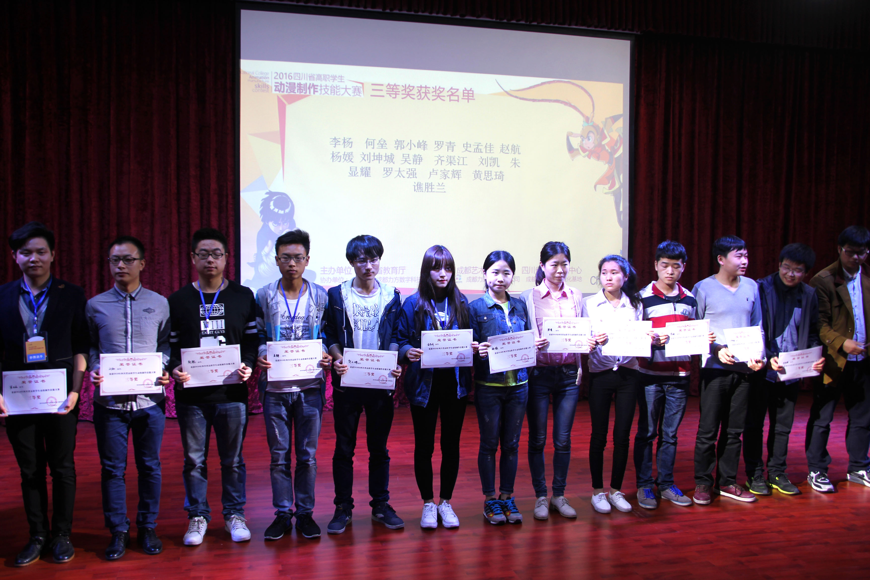 2016年四川省高职学生动漫制作技能大赛于4月13日在成都艺术职业学院举行,我院计算机科学系由欧君才教授、田晓明、杨劲,三位教师亲自挂帅,带领三支学生队伍参加了比赛。学生们在赛场里经过7个小时的连续奋战,三名学生以优异的成绩脱颖而出,喜获佳绩,何华、王思航同学分别获得二等奖,杨媛同学获得三等奖。