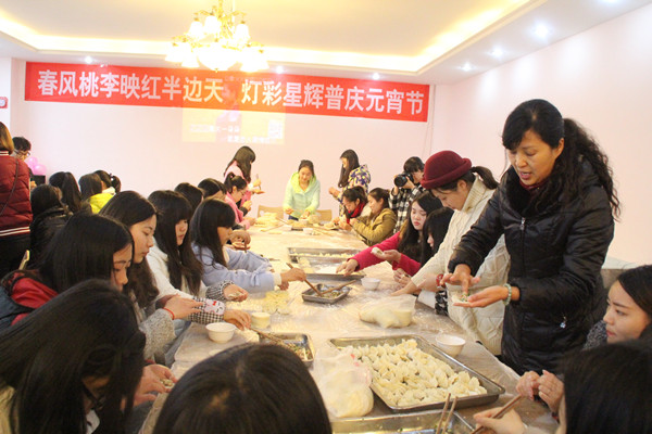 3月4日中午,学院管理工程系师生,在广汉校区食堂举行了包饺子、吃饺子等体验活动,品尝团圆、祥和的师生情,欢庆开学后就即将到来的元宵节、三八妇女节。学院刘家騑院长等院领导也光临现场,同师生一起欢度节日。 学院西园食堂现场,挂起了横幅、挂满了气球,装饰虽然简单,但节日的氛围在师生同乐的一片欢声笑语中却愈发的浓烈。在老师们的带领下,同学们纷纷挽起袖子,有的准备肉馅,有的准备饺子皮,有的已经包起了饺子。大家有说有笑,好不热闹,就连不会包饺子的同学,也挽起袖子,跃跃欲试。没多久,一盘盘热气腾腾,象征团圆吉祥的饺子就出锅了,师生们开始品尝自己的劳动成果,感受这份特别的节日喜悦。 本次活动让航院师生们提前感受到了元宵节的喜庆气氛,也让女同胞们感受到自己节日所受到的关爱与祝福。同时也促进了师生之间的交流,拉近了大家的关系,传递了浓浓温情,为学院共建和谐大学校园贡献了一份力量。