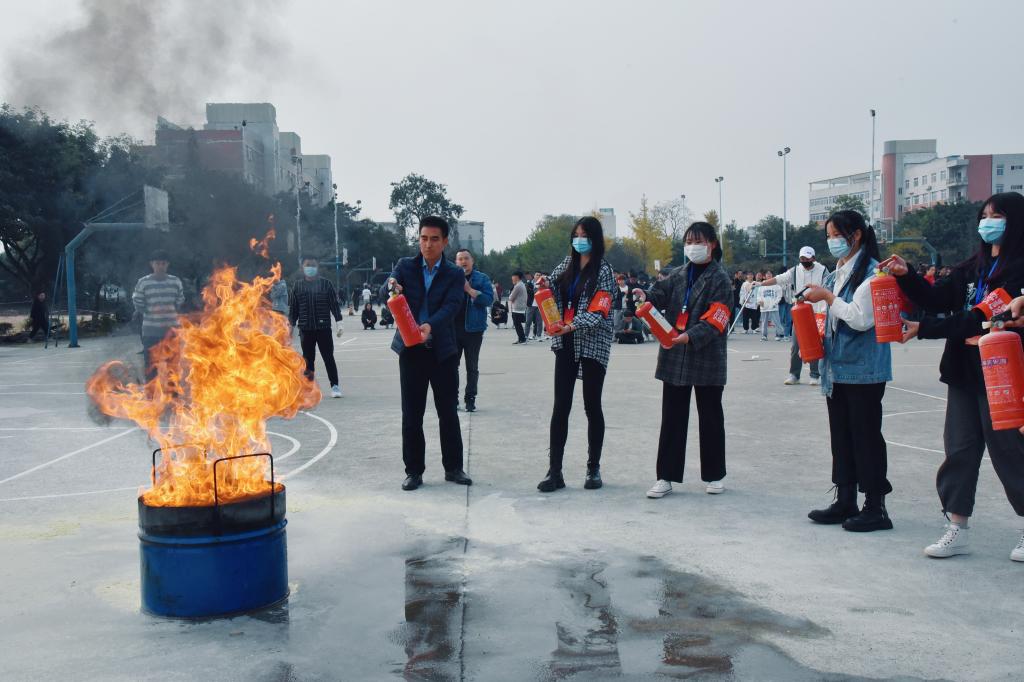 为加强学院消防安全管理工作,进一步提升全体师生防火安全知识和在应对初起火灾时的快速自救互救能力,11月12日,学院保卫处在广汉校区篮球场组织开展了以“杜绝火灾隐患 共筑平安校园”为主题的灭火实战演练,校区新进员工、重点防火部位安全管理员和学生寝室室长代表近1000人参加了演练。