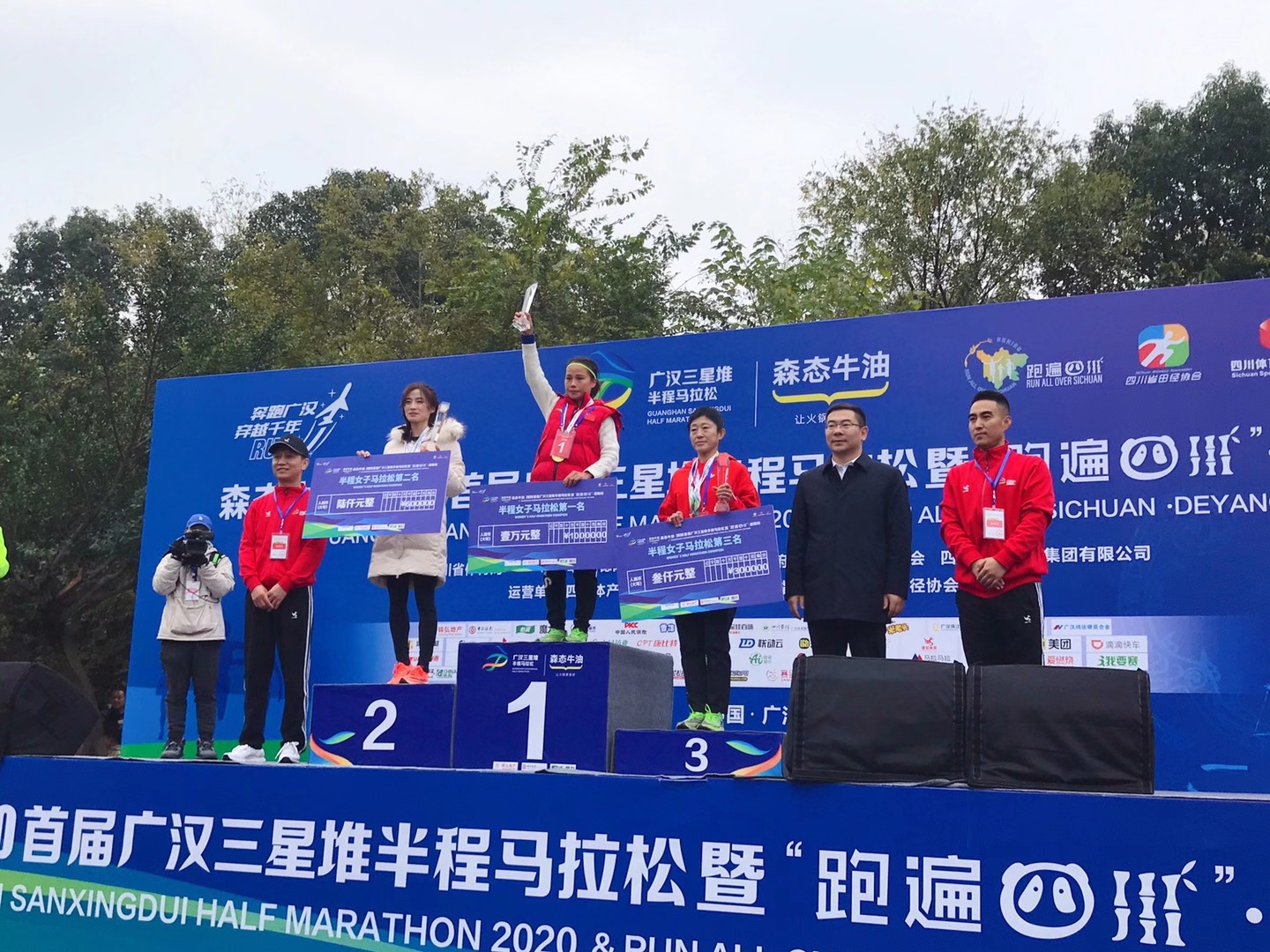 12月6日,森态牛油·2020首届广汉三星堆半程马拉松暨“跑遍四川”德阳站开跑,5000名来自全国各地的跑者在古蜀名城广汉上演了一场“速度与激情”的路跑盛宴。学院副院长于一作为特邀颁奖嘉宾与广汉市政府市长等领导一同为此次获奖选手颁发奖状和奖金。