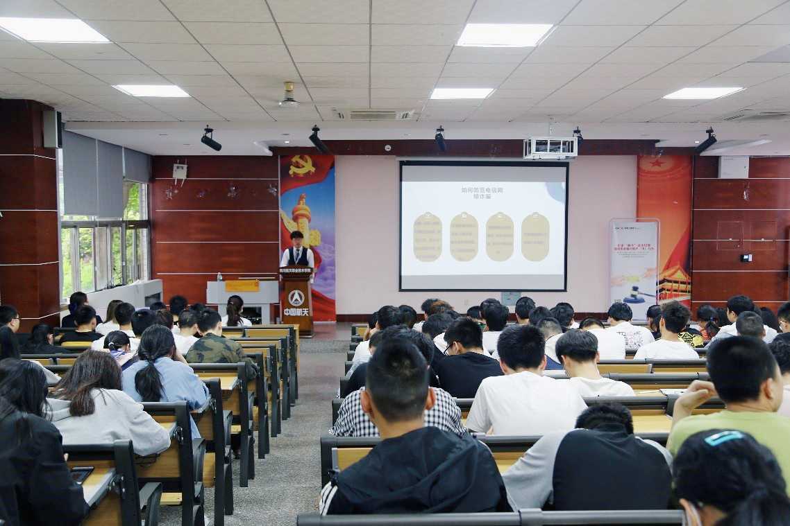 为了进一步做好学院学生资助诚信主题教育工作,把诚信教育、预防网络诈骗教育等警示教育融入学生日常管理,5月26日下午,学院龙泉校区南阶梯教室举行了“防范电信网络诈骗”主题讲座。此次活动由学生工作部主办,讲座邀请中国工商银行航天路支行的专业人员做讲解,近三百名师生参加了此次讲座。