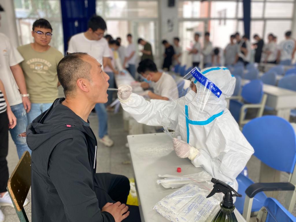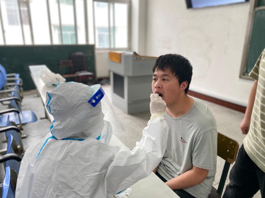 采样过程中,工作人员严格按照采样工作要求,进行了身份核验、体温测量登记、咽拭子标本采集,后勤处出动5名工作人员到现场全程配合,由于采样工作组织有序,在不到一个小时的时间里完成了全部采样。