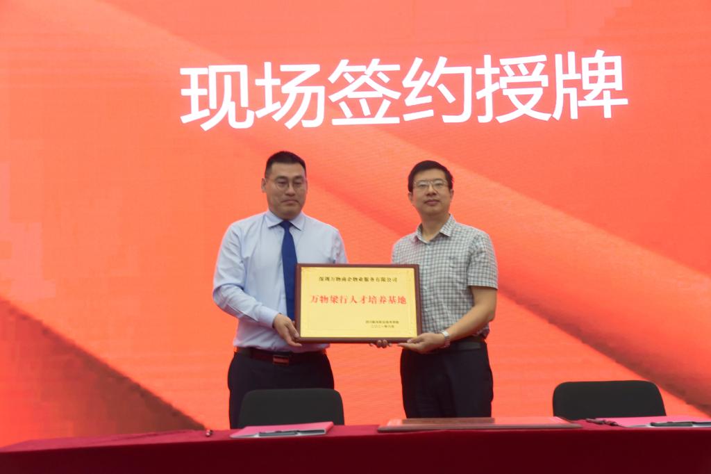 随后,在与会人员的见证下,校企双方领导签订了校企合作协议,并完成了“教学实践基地”与“万物梁行人才培育基地”的授牌仪式。