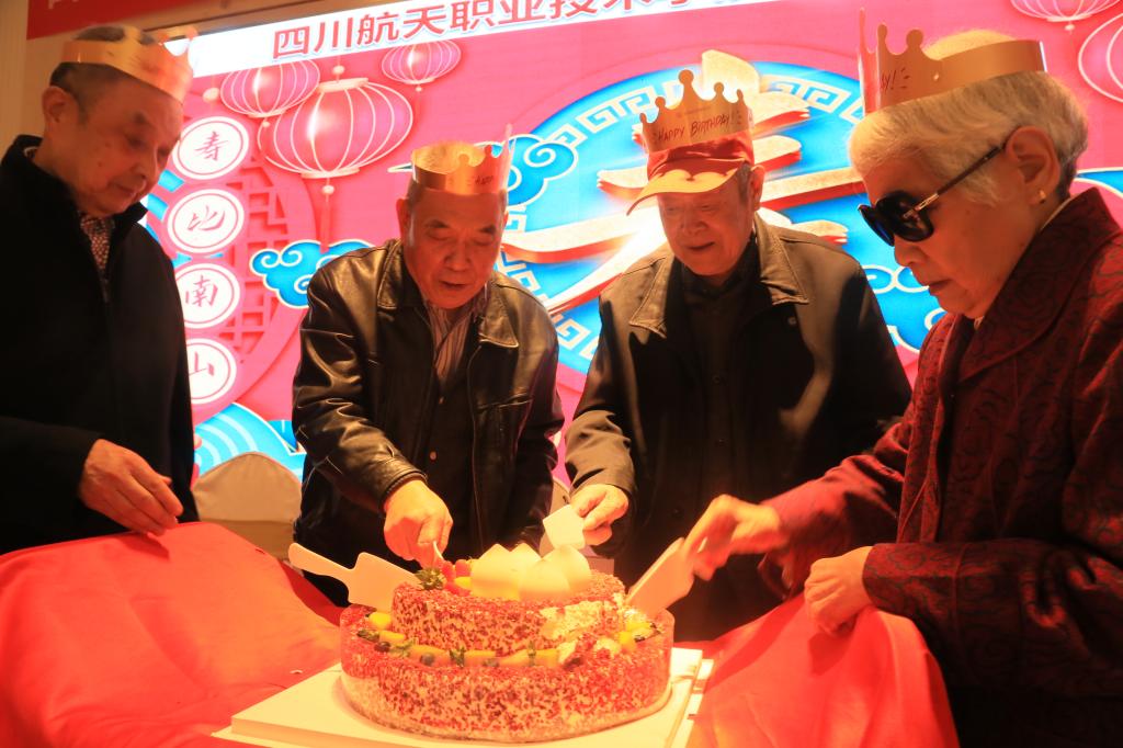 随后,学院全体领导班子为今年年满八十岁的4位寿星老人集体祝寿,为寿星们送上鲜花和礼品,寿星们手捧鲜花和礼品,共同吹灭蜡烛,分享生日蛋糕,与学院领导合影留念。