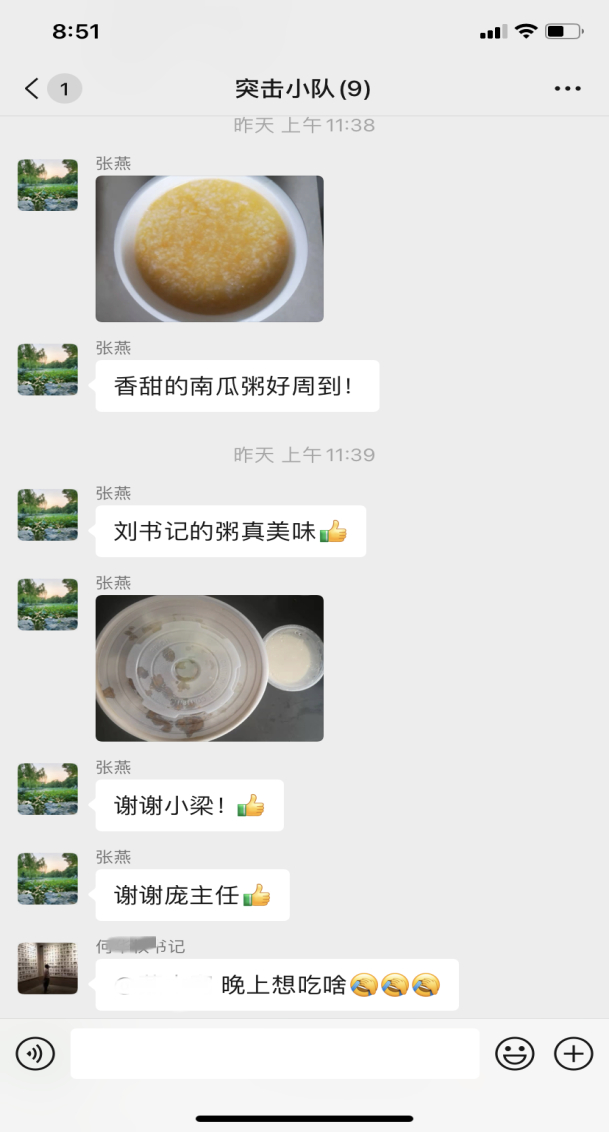 这是团学思政党支部突击小队微信群里面的日常对话。