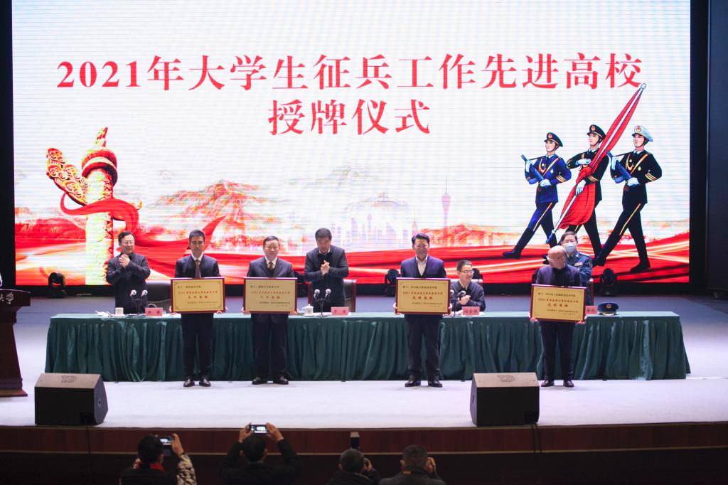 近日,2021年度全省大学生征兵工作先进高校授牌仪式在西华大学隆重举行。四川省政府副省长罗强、四川省军区国防动员局局长吴弟伦和四川省教育厅厅长邹瑾出席授牌仪式,全省获奖高校相关负责人、学院分管安全工作于一副院长和征兵负责人参加了会议。