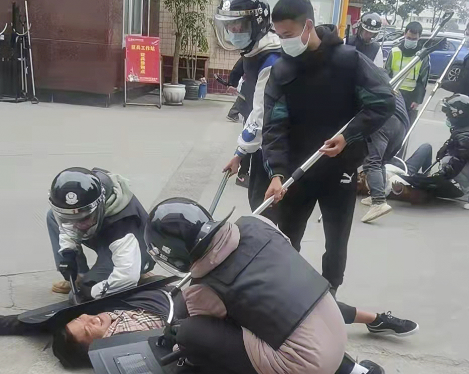 下午3时,反恐防暴演练正式拉开序幕。两名手持棍棒的“歹徒”突然闯入学院南大门,在保安及义警队队员马上劝其停下,并让他离开学校,凶残的歹徒不听劝告,挥舞着手中的凶器强行冲入校园。学院迅速启动反恐防暴应急处置预案,在校园防暴队合力下,迅速制服歹徒,保障了学院师生的人身安全。