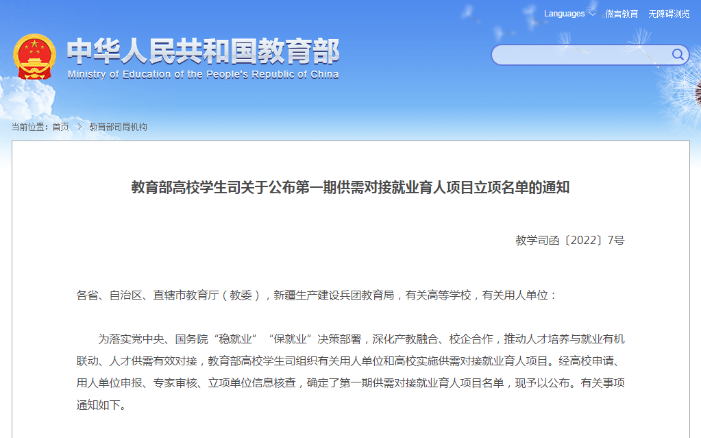 供需对接就业育人项目是于去年12月份首次实施,此项目既为有意向与高校开展人才供需对接和就业育人合作的用人单位提供平台,又为深化产教融合、校企合作,推动人才培养与就业有机联动创造机遇。