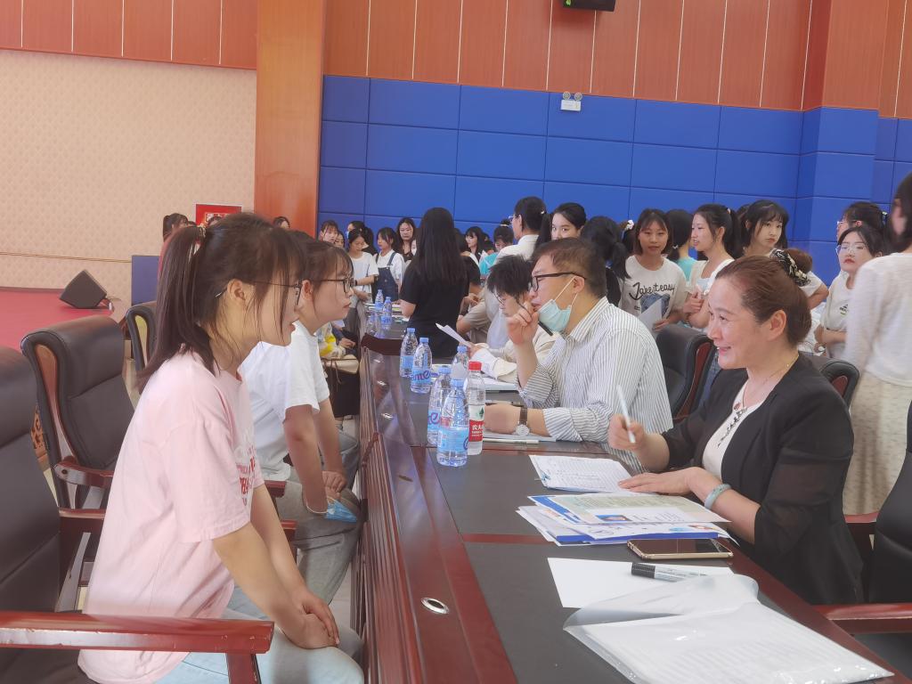 招聘在学术报告厅和劝学楼同时进行,学生们积极地向有意向的园所投递简历,面试和考核现场气氛热烈、井然有序。招聘会通过个人试讲、才艺展示、座谈会等多种方式开展,给学生们提供了多种自我展示机会。同学们无论是教育理论还是说唱弹跳的才艺,都全力以赴,展现出了航天学子的风采。不少学生表现亮眼,素质水平和专业能力较好,得到园方的认可,现场与园方其达成初步合作共识。