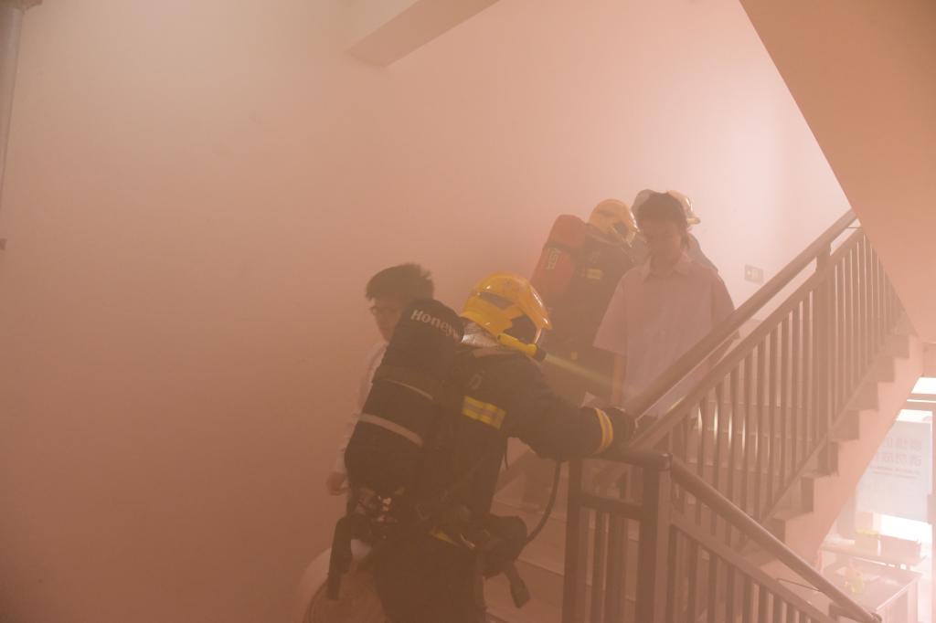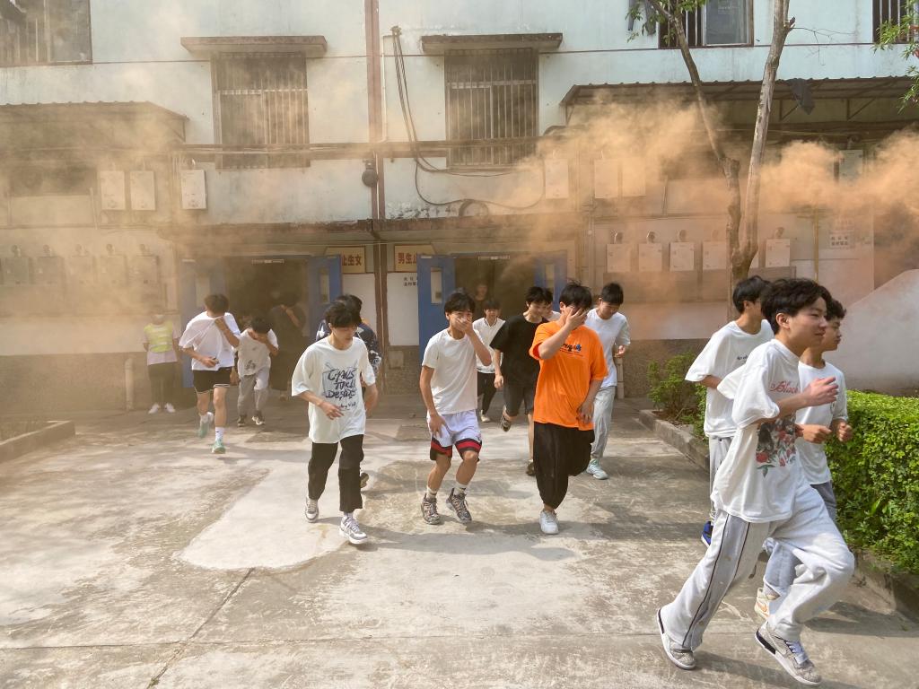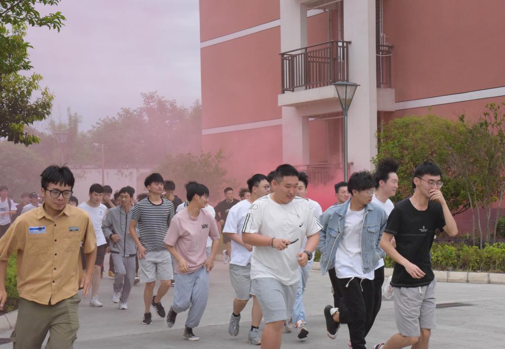 迎着声声警笛,伴着阵阵浓烟,5月13日上午10点整,三星堆校区神舟8号宿舍应急疏散演练正式拉开帷幕,在楼层疏散引导员的指挥下,1300多名参演师生沿着预定疏散线路,经过3分50秒,顺利到达演练集结区域。
