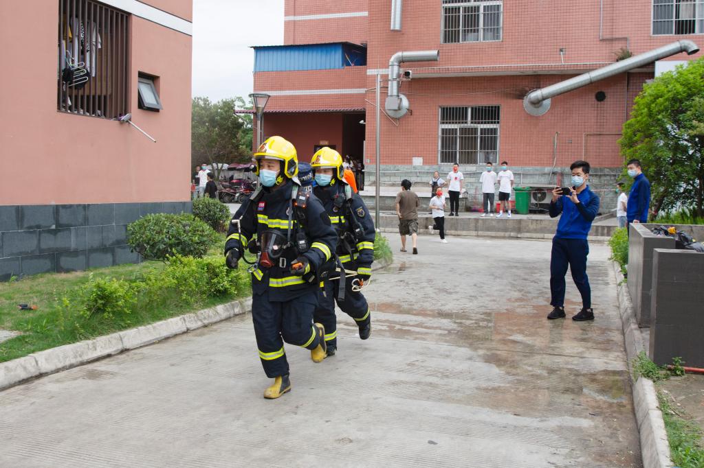与此同时,广汉市消防中队指战员,充分利用消防水炮车和建筑室内消火栓等消防设施设备,对大楼“起火”部位实施了压制和扑救,经过消防官兵近3分钟的全力“扑救”,宿舍“火灾”被全部扑灭。