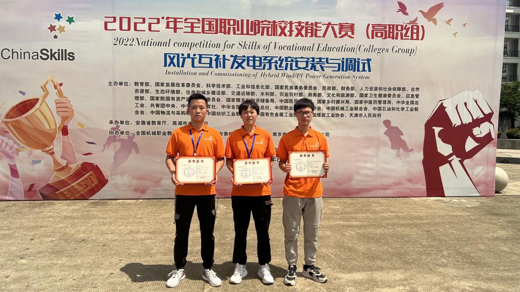 2022年8月5日至7日,由教育部主办的全国职业院校大学生技能大赛风光互补发电系统安装与调试赛项在安徽省芜湖市安徽机电职业技术学院举行,来自全国48所高校参加此次竞赛,十大网投平台排名团队代表四川省,在激烈的角逐中,沉着面对,表现出色,从众多队伍中脱颖而出,取得该赛项二等奖的好成绩。