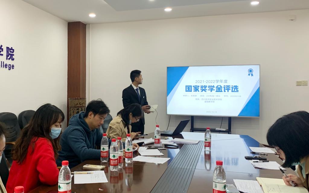 近日,四川航天技师学院2022年中职国家奖学金评审会于在龙泉校区顺利召开,学院党委副书记陈林辉、学工部部长刘晓芳、基础教学部副书记陈水松等评审小组成员及6名国家奖学金候选人参加了本次会议。会议由评审小组成员李庆主持。
