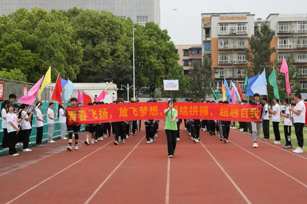 赛场上彩旗飘扬,伴随着激昂的运动员进行曲,国旗方队、校旗方队、各班级代表队依次入场,同学们迈着整齐的步伐,喊着响亮的口号,以饱满的精神步入运动场,展现出青春的活力与风采。陈林辉作现场致辞,他希望全体运动员、裁判员团结协作,各部门精心组织,确保运动会顺利进行,并勉励全体师生坚持锻炼、健康工作、幸福生活。
