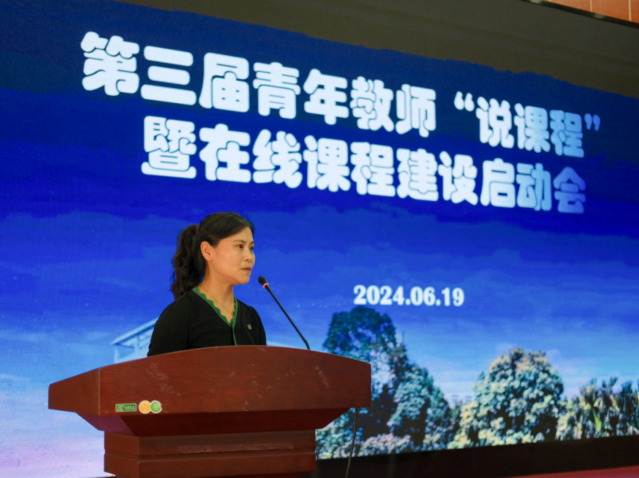 2024年6月19日下午,学校第三届青年教师“说课程”比赛暨2024年在线课程建设启动会在三星堆校区学术报告厅隆重举行。智慧树网营销副总裁张远见、四川师范大学商学院副院长刘娅教授和学校教学督导受邀担当现场赛评委,各二级学院领导及老师亲临现场观摩,活动由校第二届“说课程”比赛一等奖获得者马克思主义学院教师周瑶主持。