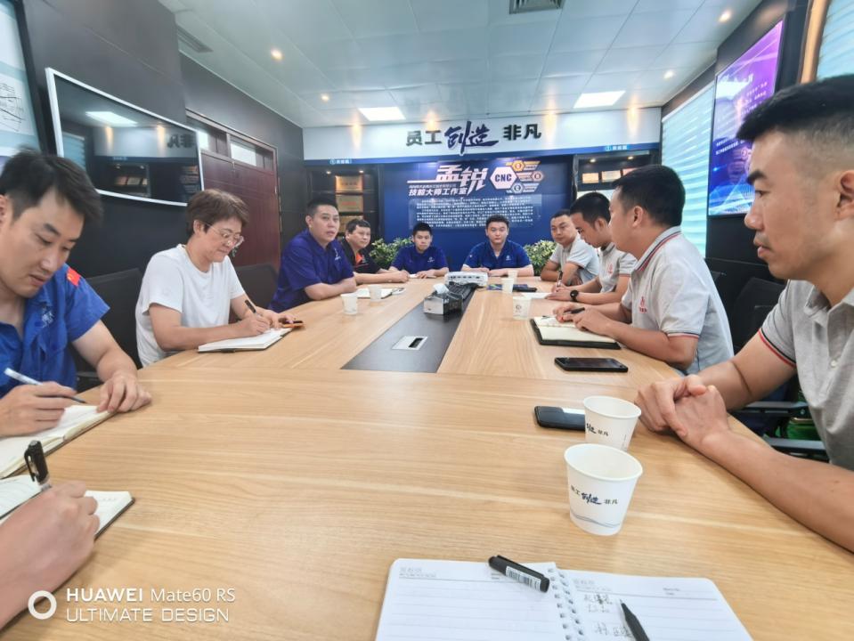 在参访孟锐大师工作室和数控加工车间期间,孟锐大师向老师们介绍了孟锐大师工作室的发展概况和运行管理经验,特别介绍了将大师工作室建设和班组建设有机融合在一起的先进经验和创新理念,通过发挥工作室在技能人才培养、技术攻关等方面的辐射带动作用,有效促进班组建设,打造技术一流、勇于拼搏、创优争先的先进班组。在与孟锐大师工作室核心成员座谈期间,双方在数控技能人才培养、技能竞赛、工作室日常运行管理等方面进行了深入的交流,同时期许在工作室和班组建设方面持续加强交流和合作,发挥双方特长,促进双方工作室建设和班组建设更上新台阶。