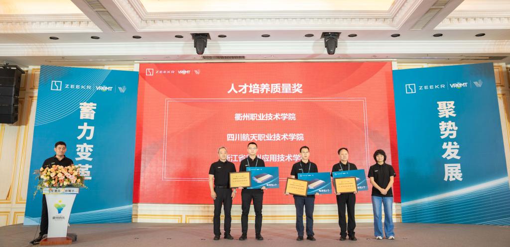 会上,极氪汽车携威睿电动进行了合作总结与规划,分析了新能源三电系统发展现状及未来发展趋势,探讨了如何深化产教融合,同向同行,双融双助,创新培养模式,启动了第二届”威“光师匠教师入企历练匠心传承计划,并现场对校企合作的横向课题进行了签约。 大会还颁发了多项荣誉奖项。