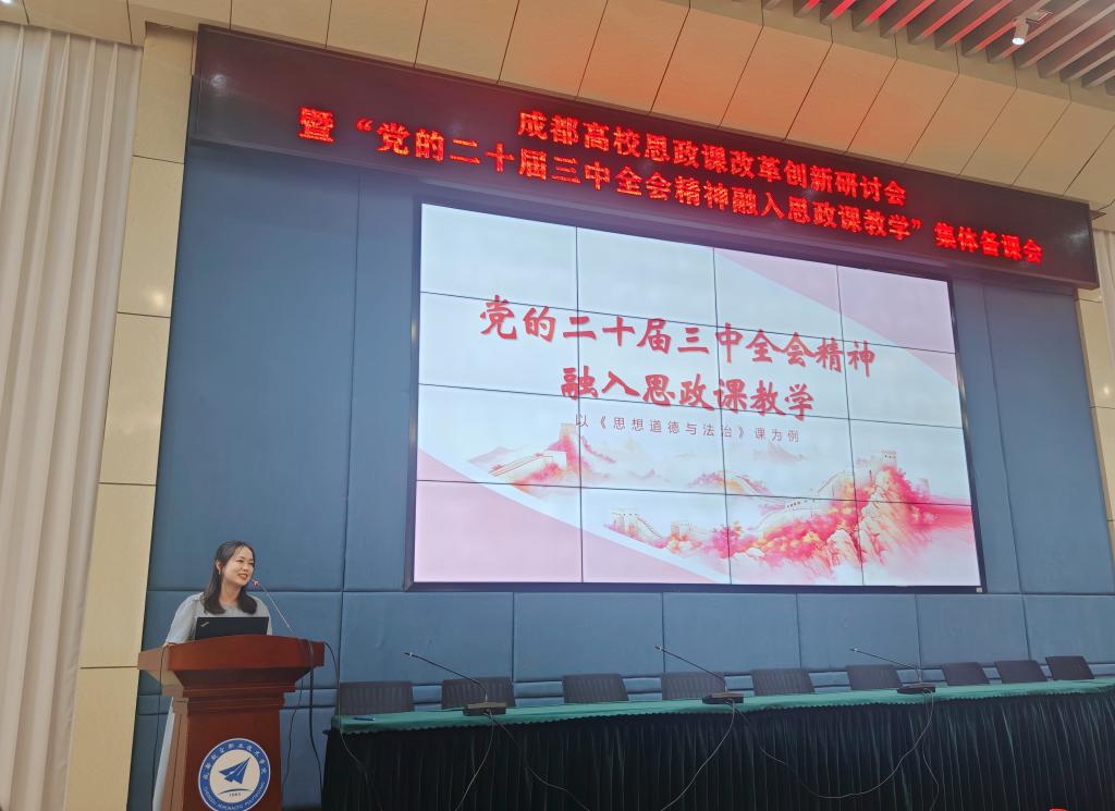 为深入学习贯彻党的二十届三中全会精神,进一步落实习近平总书记关于思政课建设的重要指示精神,守正创新推动我校思政课建设内涵式发展,9月24日下午,我校马克思主义学院副院长陈珍带队4名马院教师,参加在成都航空职业技术学院举行的成都高校思政课改革创新研讨会暨“党的二十届三中全会精神融入思政课教学”集体备课会。