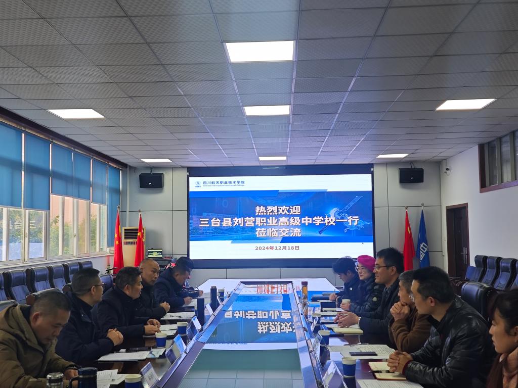 为深入推进中高职衔接教育,打造校际合作新平台,实现优质教育资源的深度融合,2024年12月18日上午,三台县刘营职业高级中学校副校长潘海彬一行莅临我校,就中高职3+2人才培养模式进行交流探讨。学校副校长赵忠元、相关职能部门负责人出席了会议。会议由招生处处长徐丽莉主持。