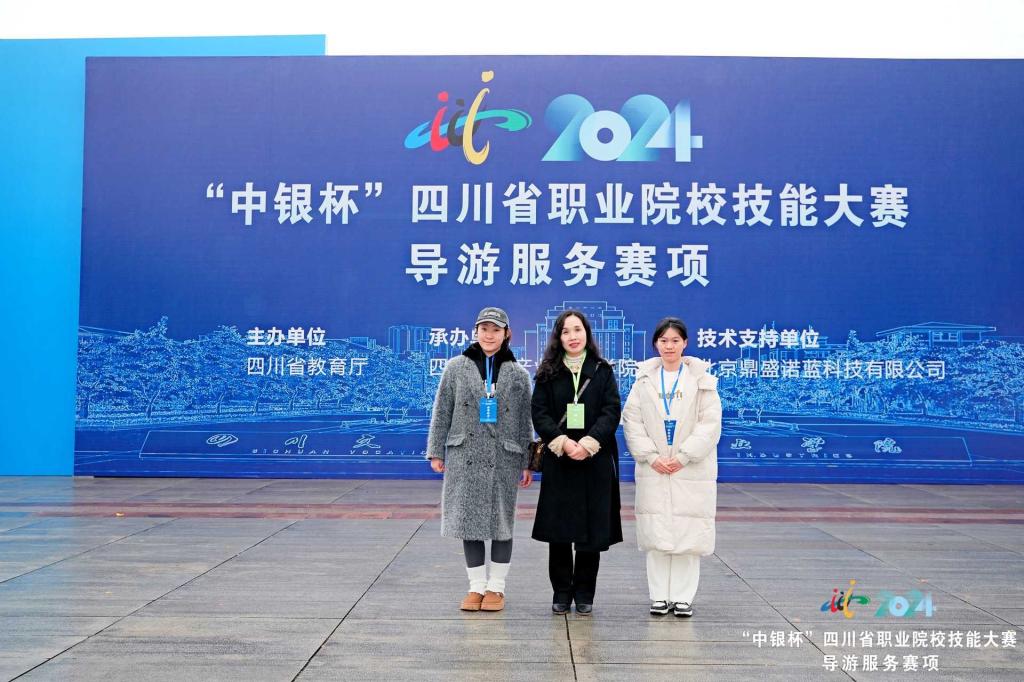 12月23日,四川省教育厅主办四川文化产业职业学院承办的2024年“中银杯”四川省职业院校技能大赛导游服务赛项比赛顺利结束,来自全省43所高等职业院校的86位选手参加了本次比赛,G23旅游管理专业学生李佳怡、周菊秀两名同学在老师的带领下荣获二等奖。
