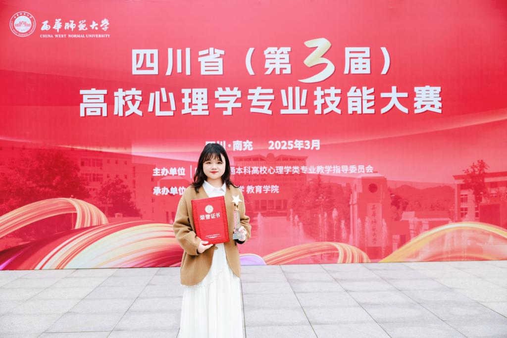 2025年3月13日—14日,由四川省心理学专业技能大赛组委会主办的四川省第三届高校心理学专业技能大赛在西华师范大学举行,来自全省27名参赛教师齐聚一堂,同台竞技。我校教师王晓慧凭借出色的教学表现和创新的教学设计,最终获得公共课教师组三等奖。