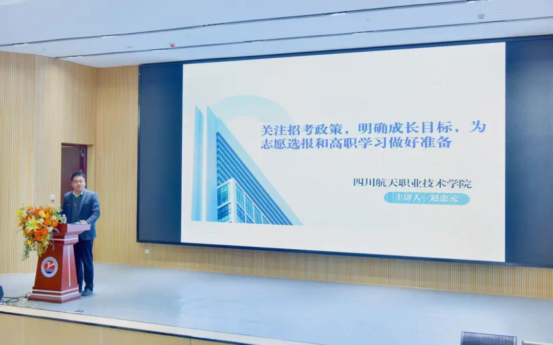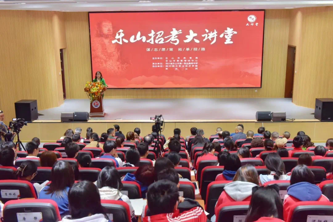 3月27日,“乐山招考大讲堂”第十九期之“谋志愿策 拓单招路”专题讲座在乐山一职中开讲,我校副校长赵忠元受邀主讲。全市招考机构、综合高中、部分普通高中、中职学校相关同志及乐山一职中师生、家长代表近500人现场聆听,线上共计46万人次观看。