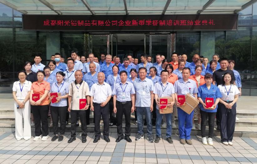 在行业竞争日趋激烈的当下,人才梯队建设已成为企业高质量发展的核心驱动力。成都阳光铝制品有限公司自2024年启动企业新型学徒制培训以来,历经一年系统培养,圆满完成全部教学任务。6月28日上午结业典礼在公司隆重举行, 62名金属材热处理工、63名物流服务师学员通过理论与实践考核,顺利完成结业,为企业技能人才队伍注入新鲜活力。