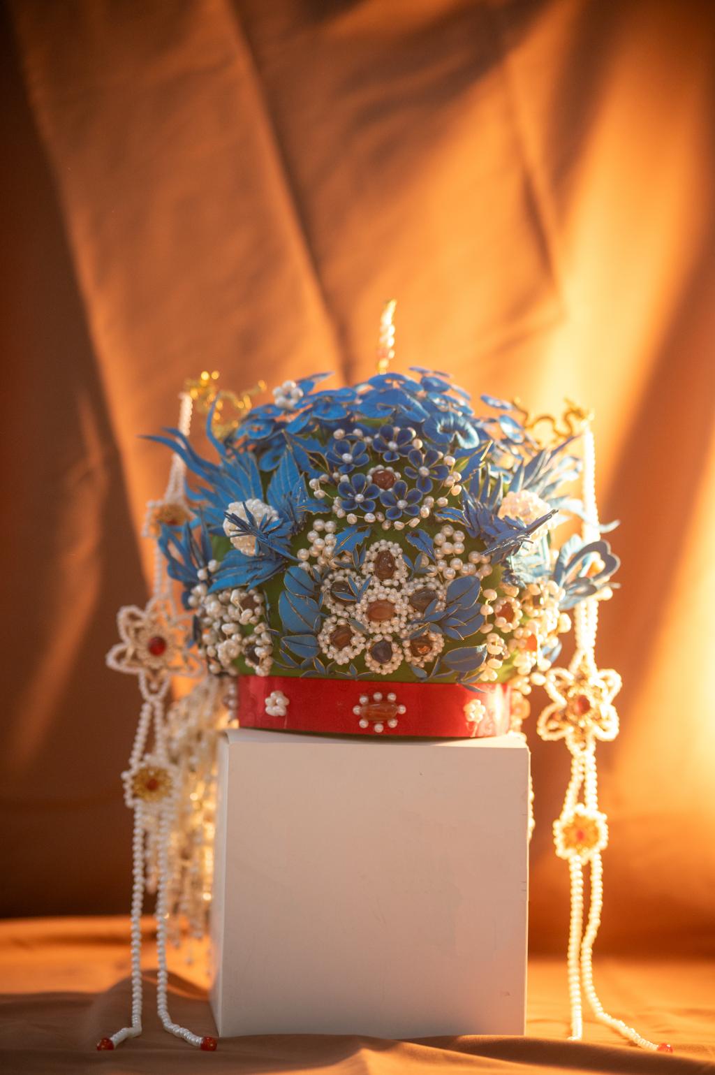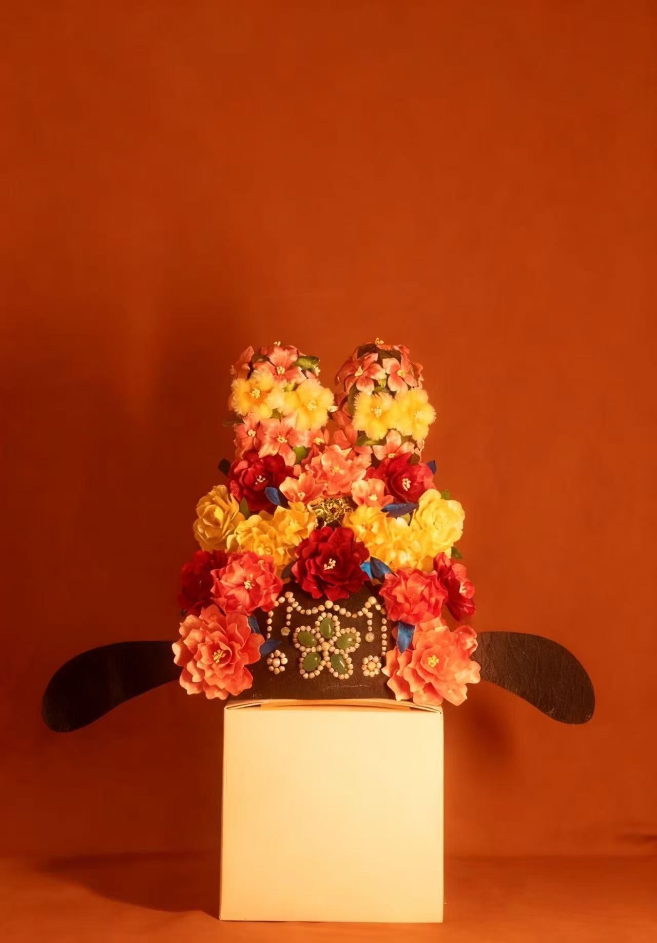 张婉银、李俊蓉、刘玉林、王霞婷团队从宋代“一年景”花冠中汲取灵感,以非遗绒花工艺创作《盛世花冠颂》。“一年景”是宋代盛行的装饰元素,将四季花卉集于一冠象征圆满,团队以天然蚕丝为材,通过抻、缠、剪、粘等技法塑造成型,用绒花的温润质感诠释宋代工艺美术的雅静之美。