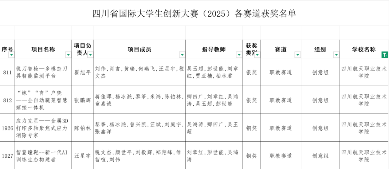 近日,2025年“建行杯”四川省国际大学生创新大赛获奖名单正式公布。我校飞行器制造学院机械创新团队获得两银两铜的佳绩。