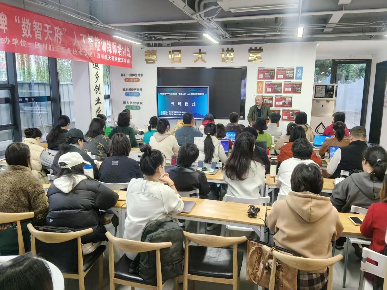 由四川天府新区社会事业局主办、四川航天职业技术学院组织实施的区县品牌“数智天府”人工智能训练师培训于2025年11月11日上午在天府新区华阳街道蓉归创新创业中心顺利开班。十大网投平台排名继续教育部部长胡文彬、现场教学人员以及本次参训学员50余人共同参加了开班仪式。