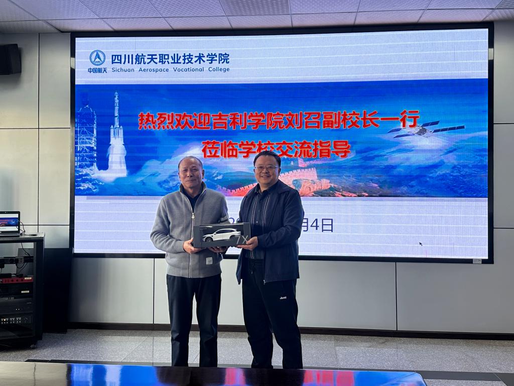 交流活动在我校致远楼216会议室举行。周林首先代表学校对吉利学院一行的到来表示热烈欢迎,并简要介绍了我校在航天特色专业建设、实训基地建设等方面的办学成果。吉利学院刘召对我校的热情接待表示感谢,并分享了吉利学院在校企合作、贯通培养等方面的实践经验。
