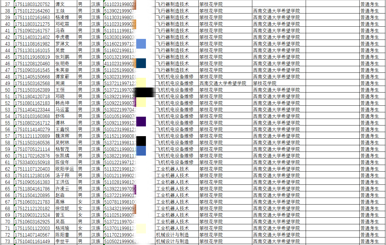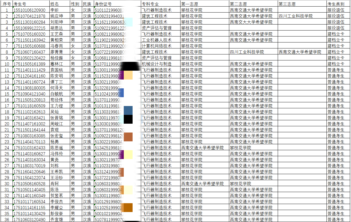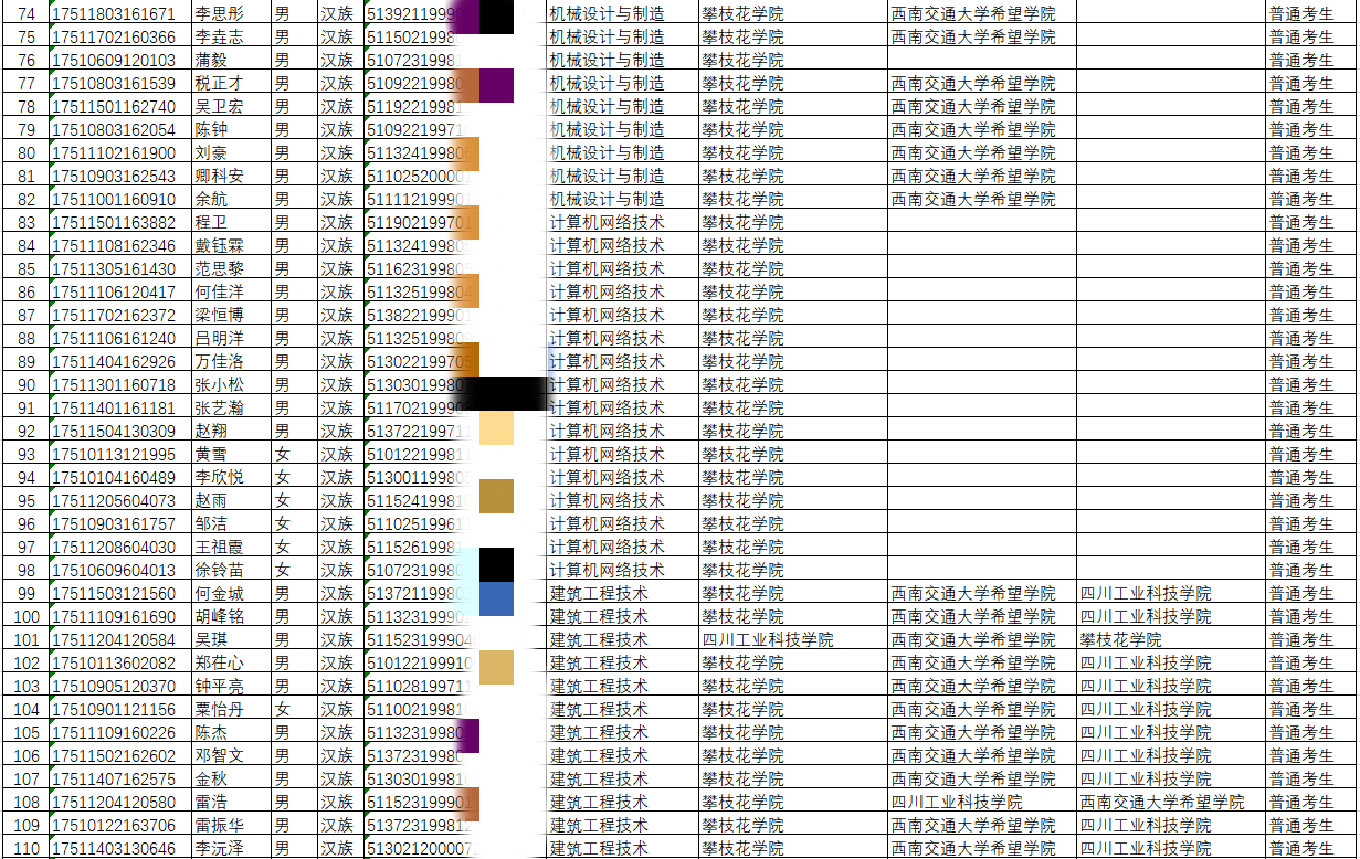 2020年跨校专升本报名学生名单(对口本科院校:攀枝花学院)