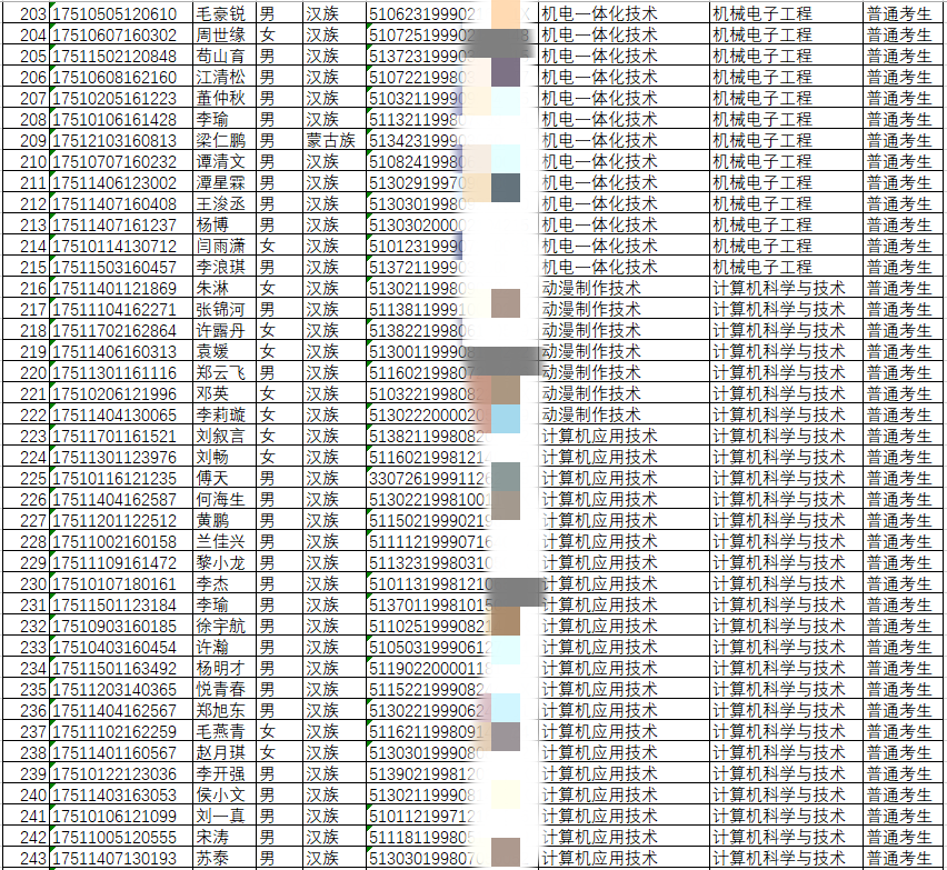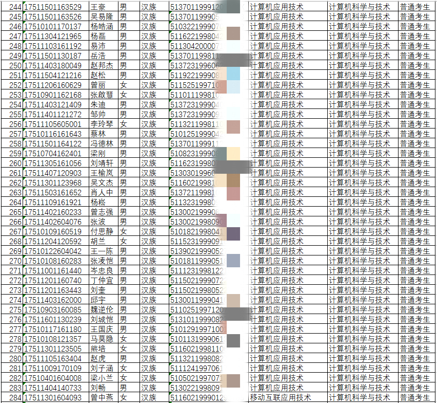 2020年跨校专升本报名学生名单(对口本科院校:西昌学院)