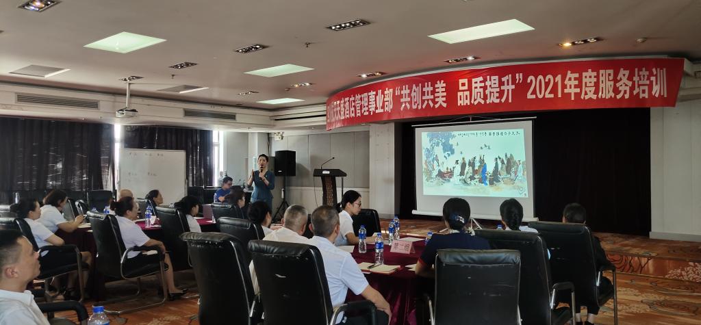 为了增强培训人员的参与性与积极性,本次培训分为礼仪姿势示范和实景训练两个部分,老师们针对礼仪的重要性以及不同场合规范使用礼仪姿态做了详细的讲解,同时学员们在丁老师的带领下,进行了前台、客房服务礼仪实景训练。老师讲解精彩,员工们听讲认真,培训取得了较好的效果,得到了参训人员的一致好评。
