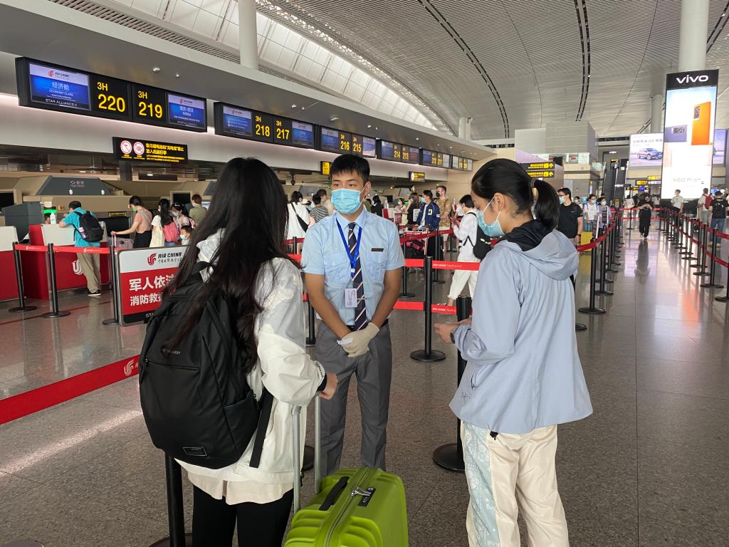 今年是疫情以来,首次恢复航班量的暑运,航班量目前已经恢复到2019年的79%。疫情下的航班保障工作对于航企和机场集团都是不小的挑战,借此机会,人文社会科学系系部领导积极应对,借助专业优势,唱响川渝经济一体化,与国航重庆分公司积极联系和对接,解了企业缺工燃眉之急,稳了毕业生就业之虑,宽了职院教育培养之心,实现了校企双赢。与此同时,国航重庆也积极响应,为学生提供了重庆江北机场航站楼地面综合岗位实习的机会,办理机场隔离通行证、开通国航员工账号,以达到最真实的工作环境,努力保障学生在此期间的生活和工作条件。