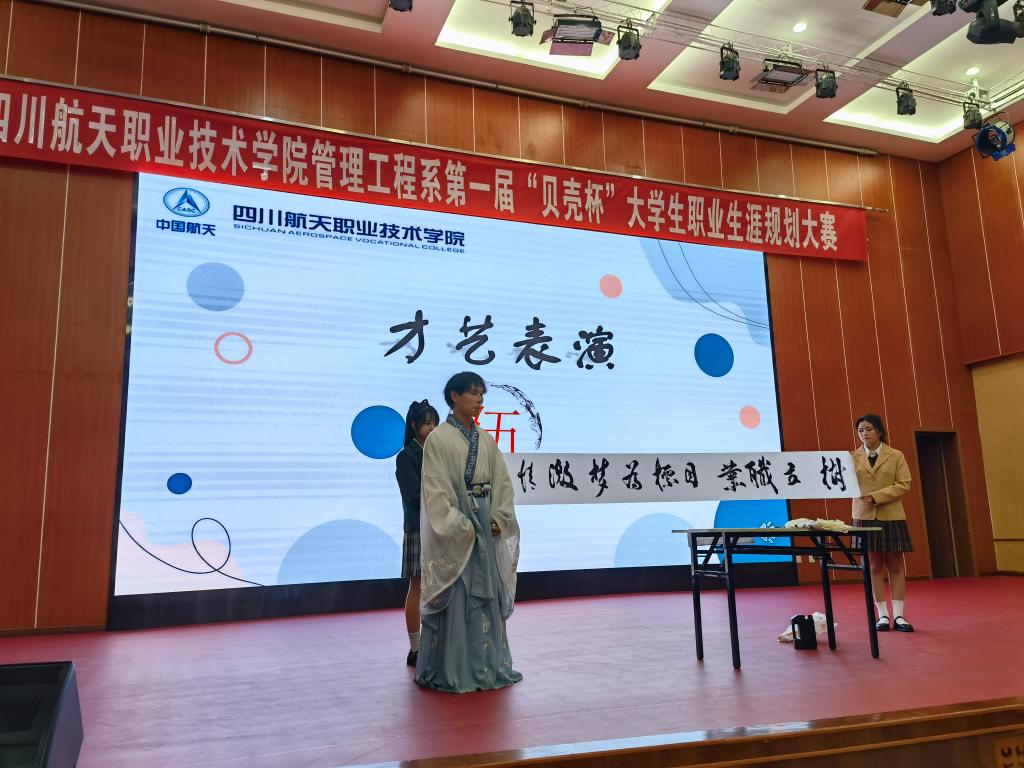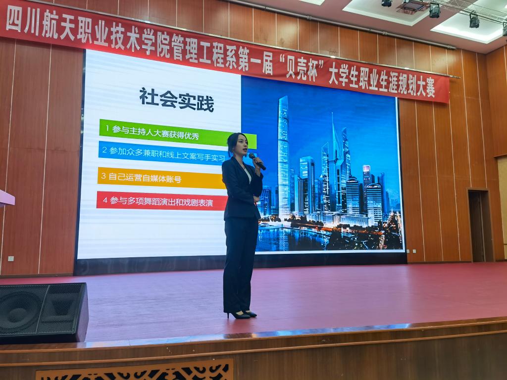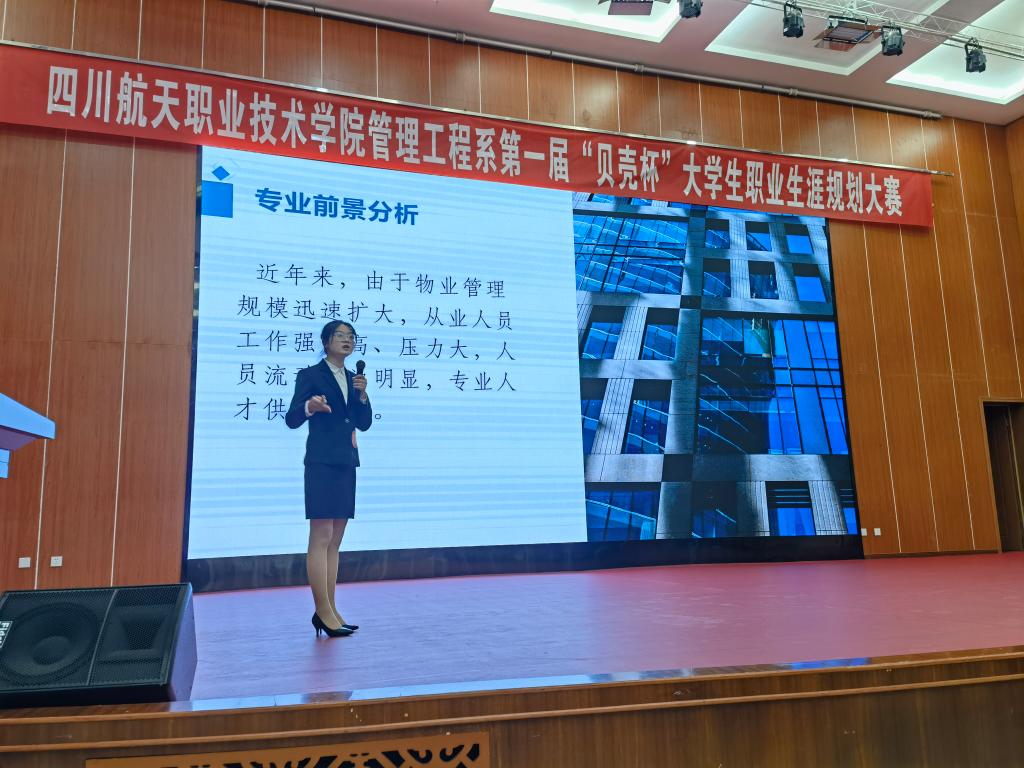 为进一步引导广大学生进行自我规划和探索,更好地进行自我定位,探索职业发展方向,科学合理的规划大学学习与生活,坚定理想信念、树立信心、规划好自己的职业生涯,做到青春勇担当。管理工程系举办了首届“贝壳杯”大学生职业生涯规划大赛。经过前期的初赛角逐出了参加决赛的十名同学,近日,在学术报告厅举行了最终的决赛。成都贝壳闹海房地产公司主管李想、成都中海物业公司副总黄剑、学院图书馆馆长钟展、科研处副处长李涛、就业处刘建国老师和管理工程系师生出席了活动。本次大赛通过抖音平台进行了全程直播。