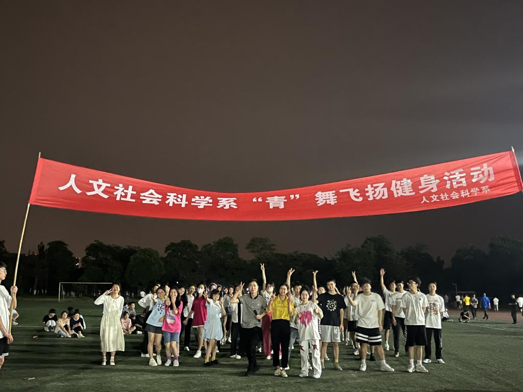 携手战疫情,身心要健康!为丰富校园文化生活,展现人文系专业特色,提高同学们的身心素质,号召同学们走出寝室,走向操场,在保证遵守疫情防控工作要求的前提下,人文社会科学系策划、组织师生开展“青”舞飞扬健身活动。