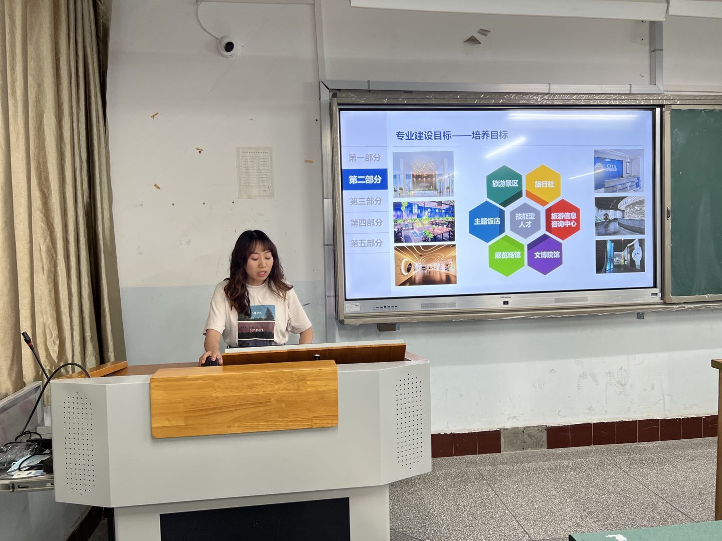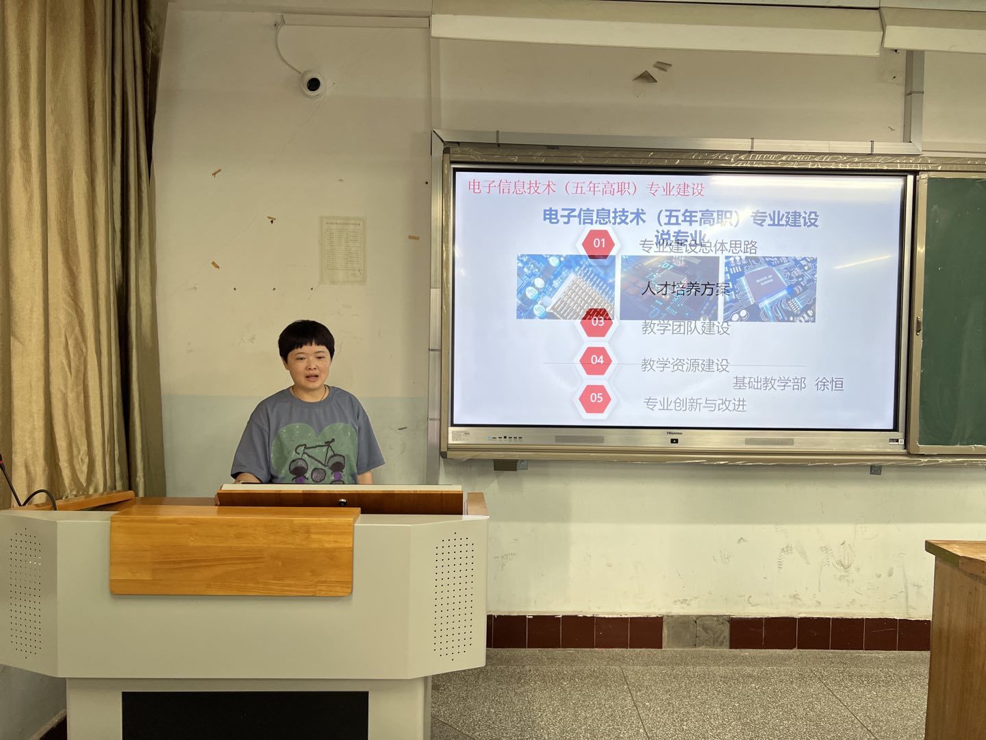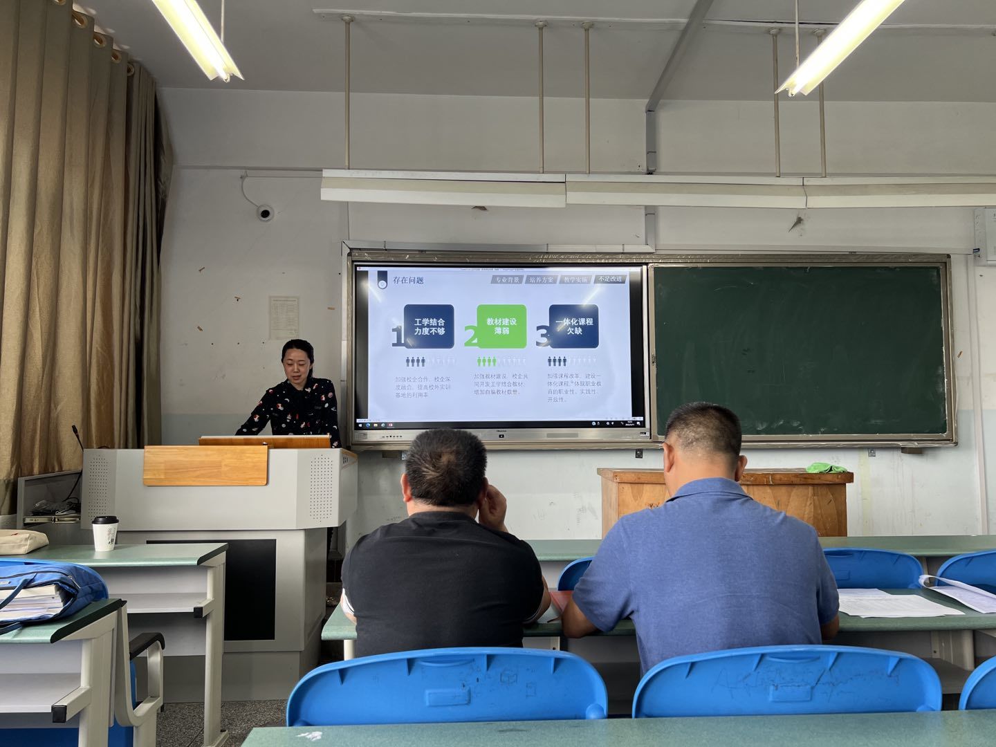 各专业负责人经过通盘谋划,先破后立,分享了“专业建设如何进一步落实及更好地为技术技能人才培养服务”的认识与思考,亮点纷呈。各专业负责人的汇报极具前瞻性、思维性、指导性,观点新颖。电子信息工程技术专业负责人徐恒结合专业的优势与特点提出:建立活页式工作页;机电一体化技术专业负责人高春老师提出:增加一体化课程教育,改善教材陈旧与企业共同开发工学结合教材等。针对新成立的旅游服务与管理、现代物流及电子商务三个专业,宋应、张建、叶安安三位老师分别提出加强建设基础,打造优势特色,增强实践教学;积极更新教学实践内容,证通融合,鼓励学生考取物流服务师、导游证等技能等级证书;把握主动服务数字技术催生的新产业,新业态,新模式,与企业有机联动,相互支撑,相映成辉。最后,各位评委老师肯定了老师们汇报,并进行了点评。